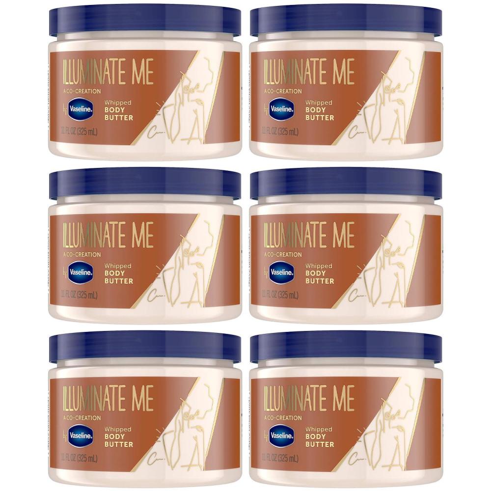 Vaseline Illuminate Me Shea Butter Whipped Body Butter for Melanin Rich Skin Provides 24 Hour Moisturization for Dry Skin 11 oz(1.83 Ounce (Pack of 6))