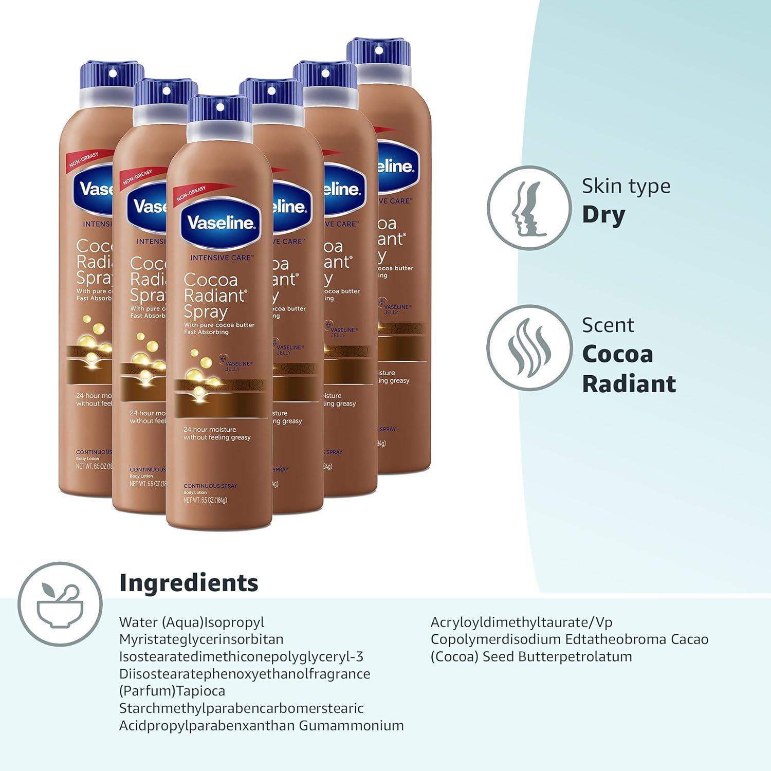Vaseline Intensive Care Spray Moisturizer For Dry Skin Cocoa Radiant Made With 100% Pure Cocoa Butter 6.5oz (Pack of 6)(6.5 Ounce (Pack of 6))