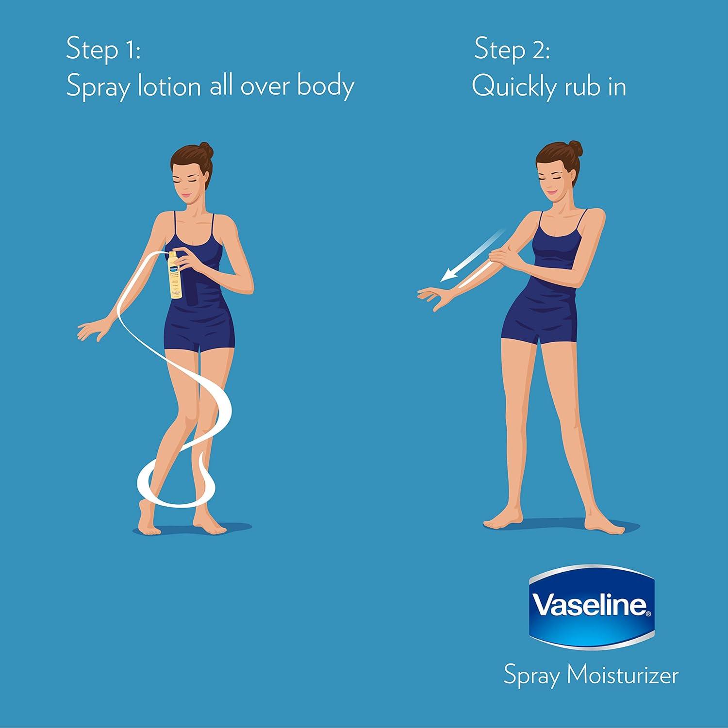Vaseline Intensive Care Cocoa Radiant Lotion Spray is the easy way to get even and full-body coverage that helps heal dry skin by delivering deep moisture. Vaseline is clinically proven to keep skin healed for 3 weeks (after using daily for 4 weeks), this non-greasy, fast-absorbing skin lotion is the perfect daily go-to moisturizer for dry skin. Our original healing microdroplets of Vaseline Jelly allow the skin’s natural barrier to recover by locking in that moisture. And when combined with 100 percent pure cocoa butter, an ingredient known to bring out the skins natural glow, it’s the ideal moisturizer for relieving everyday dryness while enjoying dewy glowing skin. Utilize Vaseline's Spray Lotion to enjoy instantly softer skin after showering, or whenever your skin feels dry. Vaseline Cocoa Radiant Spray On Lotion is the perfect daily body lotion for maintaining smooth, soft skin. The non-greasy formula relieves dry skin quickly by penetrating deep into skin’s layers, and it helps smooth rough skin, so skin feels soft and healthy. For best results when you have limited time, spray this body moisturizer over your body after you get out of the shower. Vaseline spray lotions are dermatologist-tested and approved and have been designed for easy application and even all-over coverage.